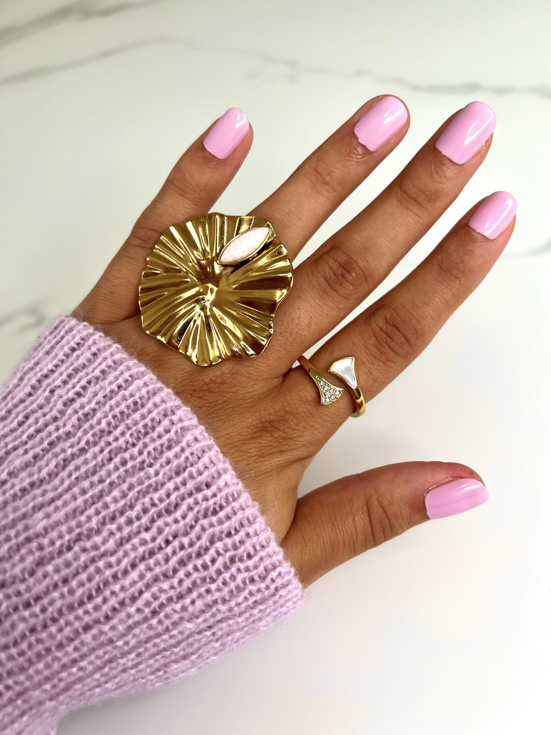 Bague ajustable ovale avec pierre de nacre, au design élégant.