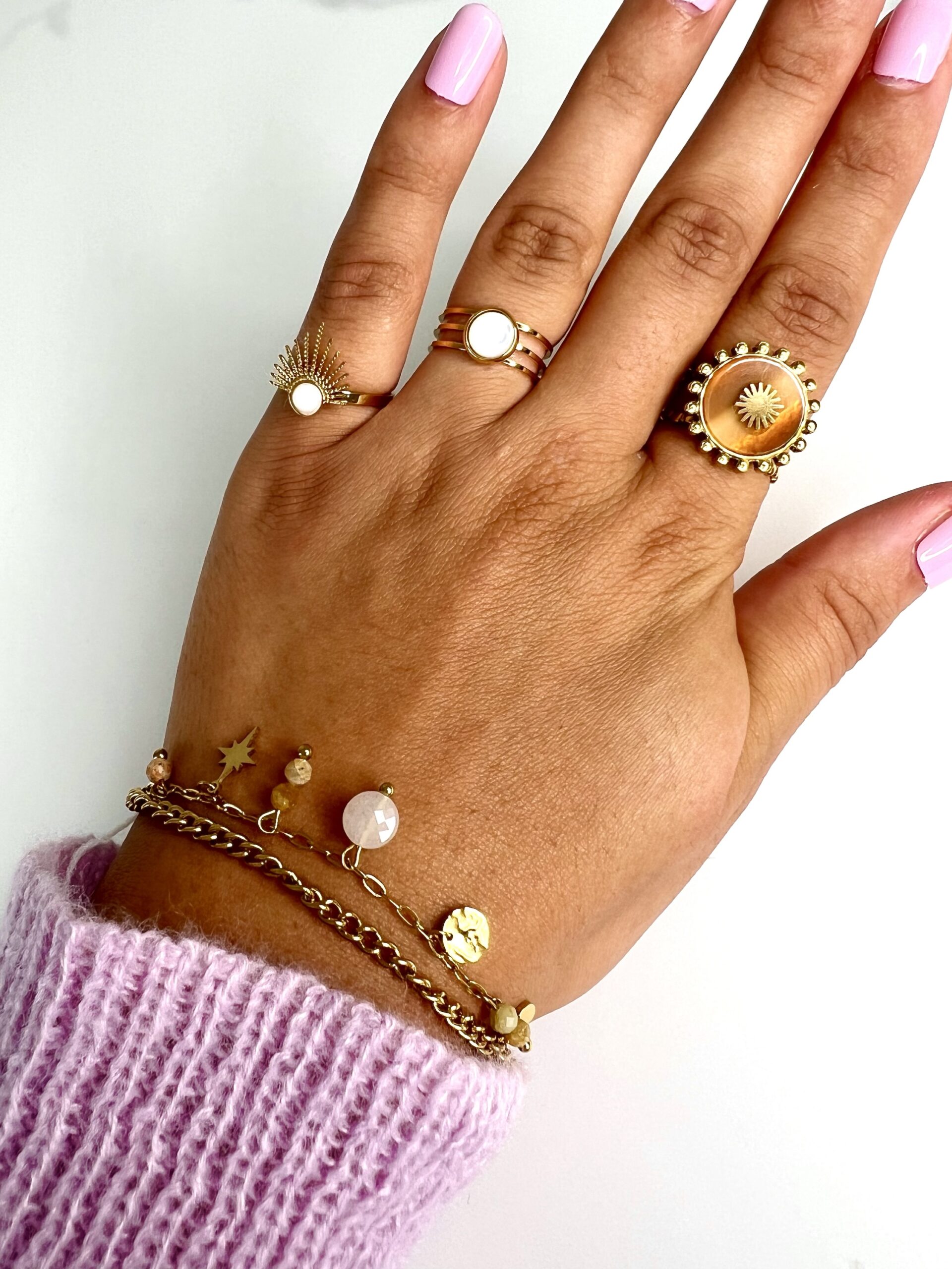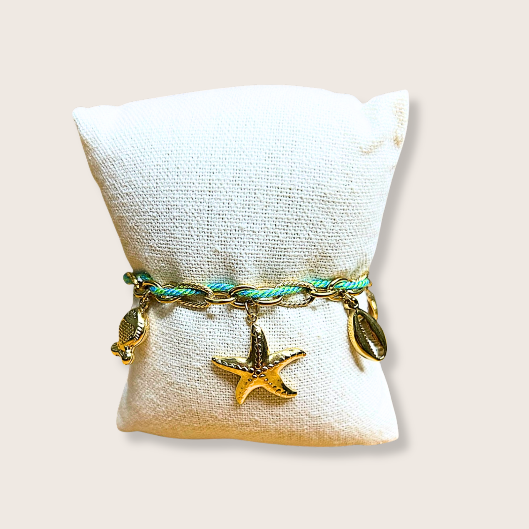 Bracelet composé de pierres naturelles, agrémenté de breloques délicates. Un accessoire à la fois authentique et raffiné, parfait pour sublimer chaque poignet.