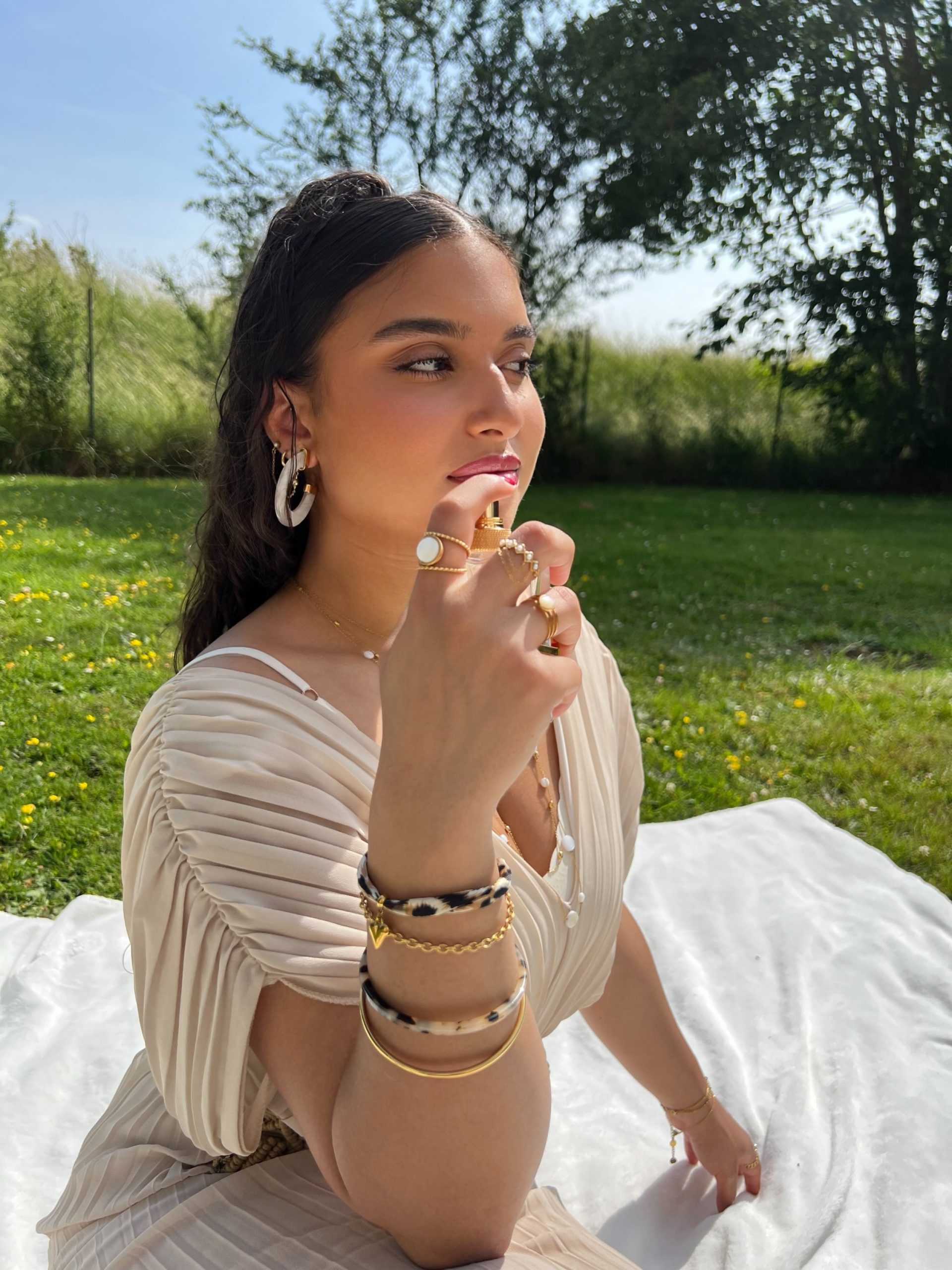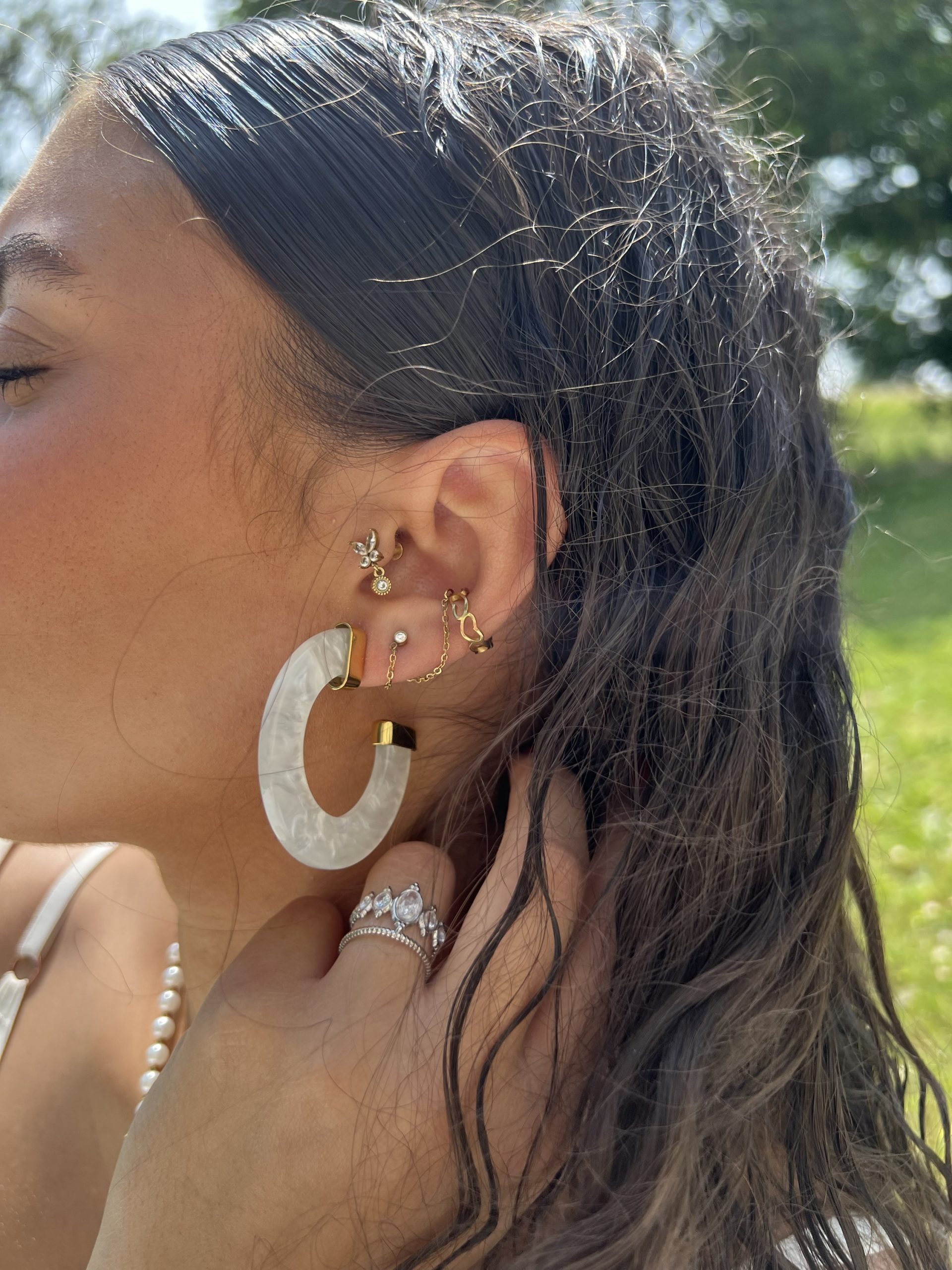 Boucles d’oreilles créoles nacrées, élégantes et raffinées pour un style chic et intemporel.