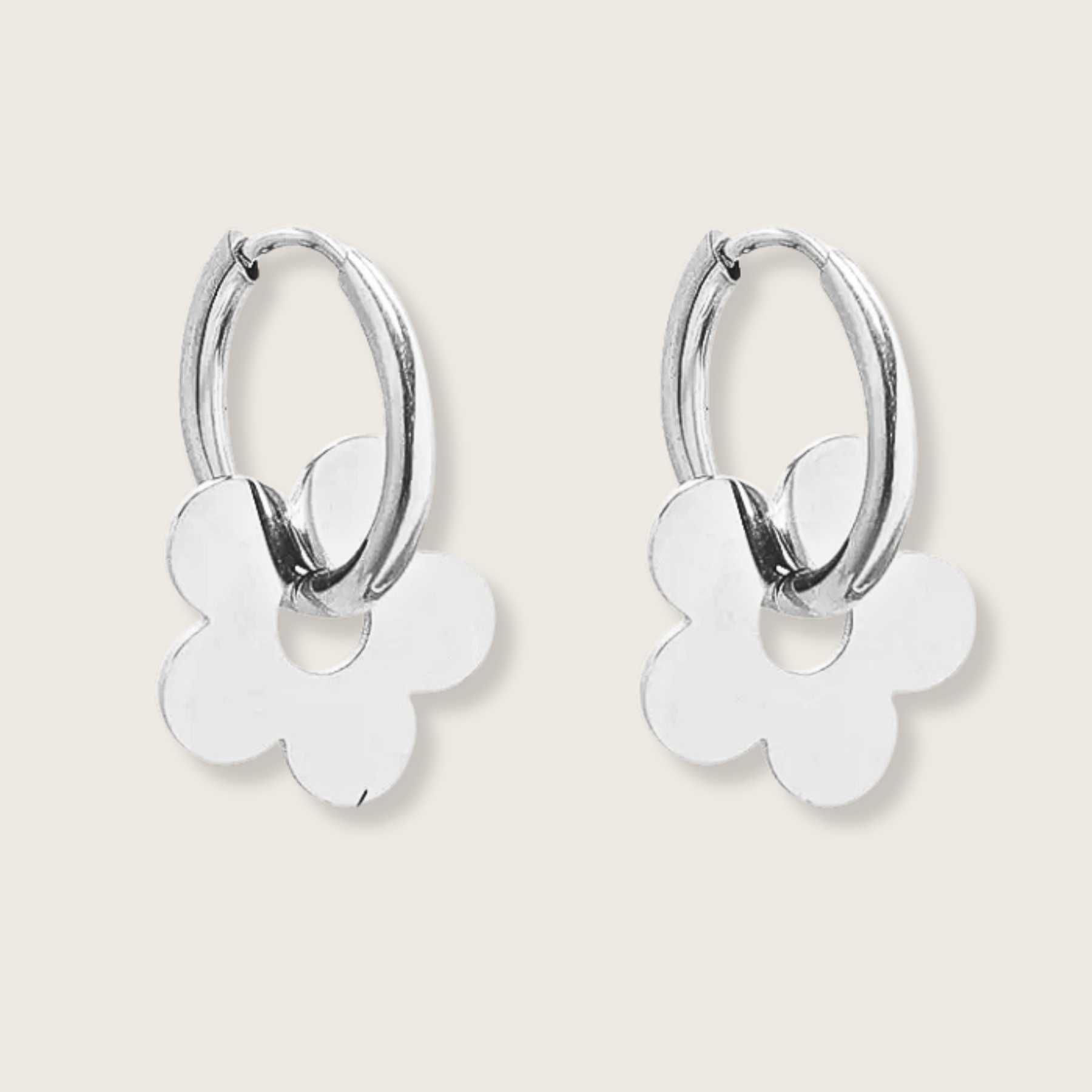 Petites créoles avec une fleur suspendue sur chaque boucle.