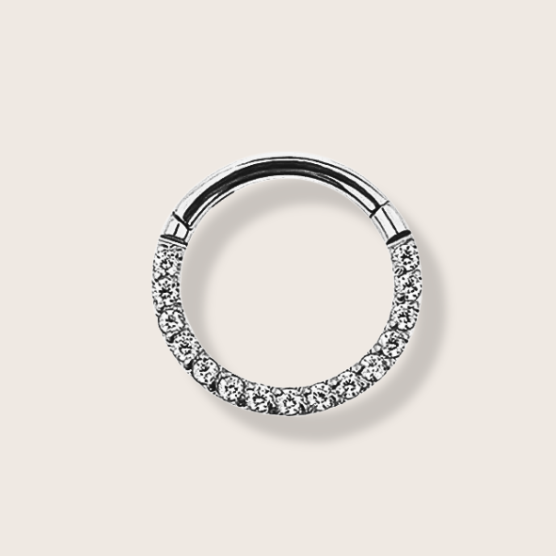 Piercing anneau serti de strass à l’intérieur, pour un éclat discret et raffiné. Taille 8 mm, parfait pour le septum, le daith, le smiley ou même certaines zones du cartilage. Un bijou chic, subtil et tout en confort.