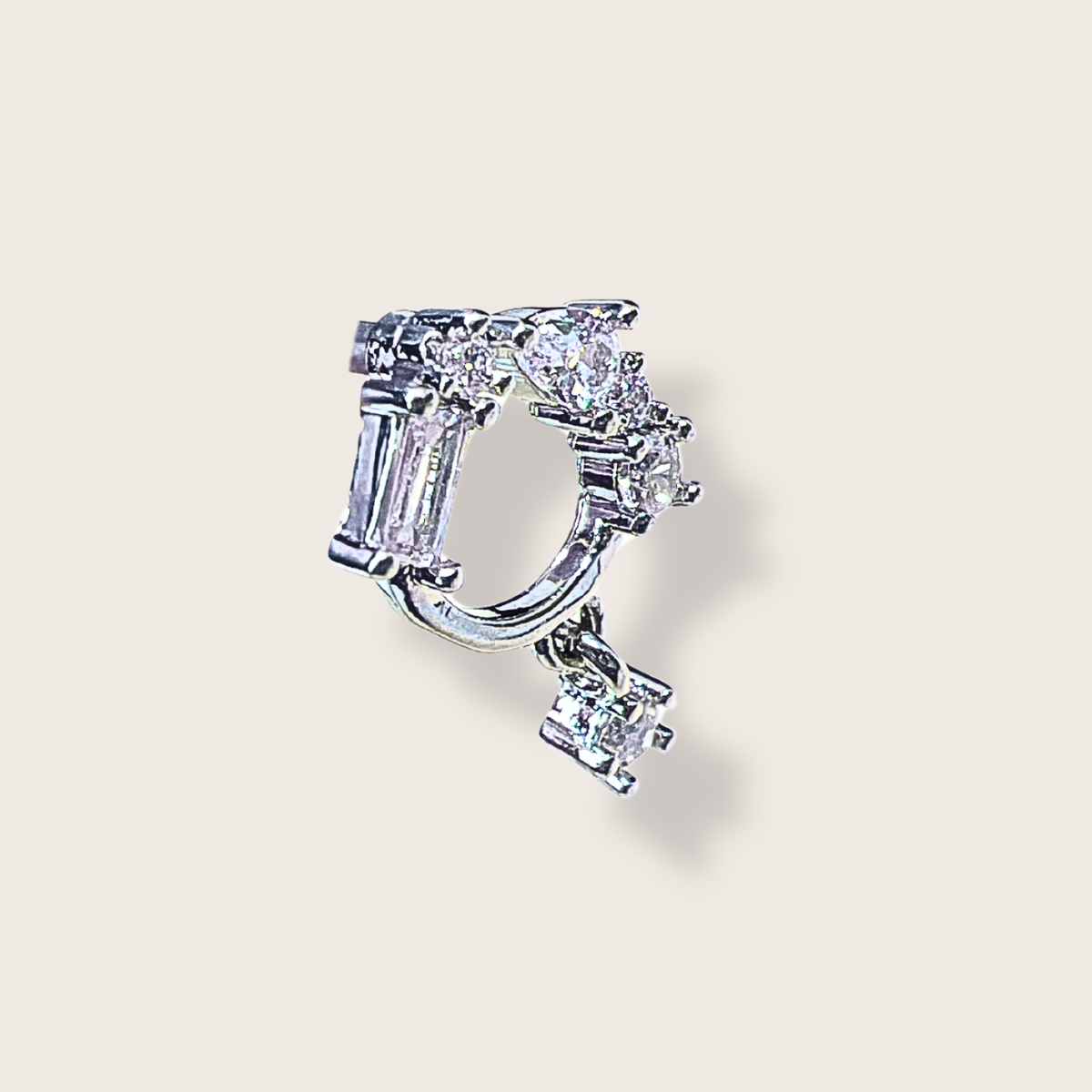 Piercing orné d’un strass central, accompagné d’un pendentif délicat incrusté de plusieurs strass pour un effet lumineux et raffiné.