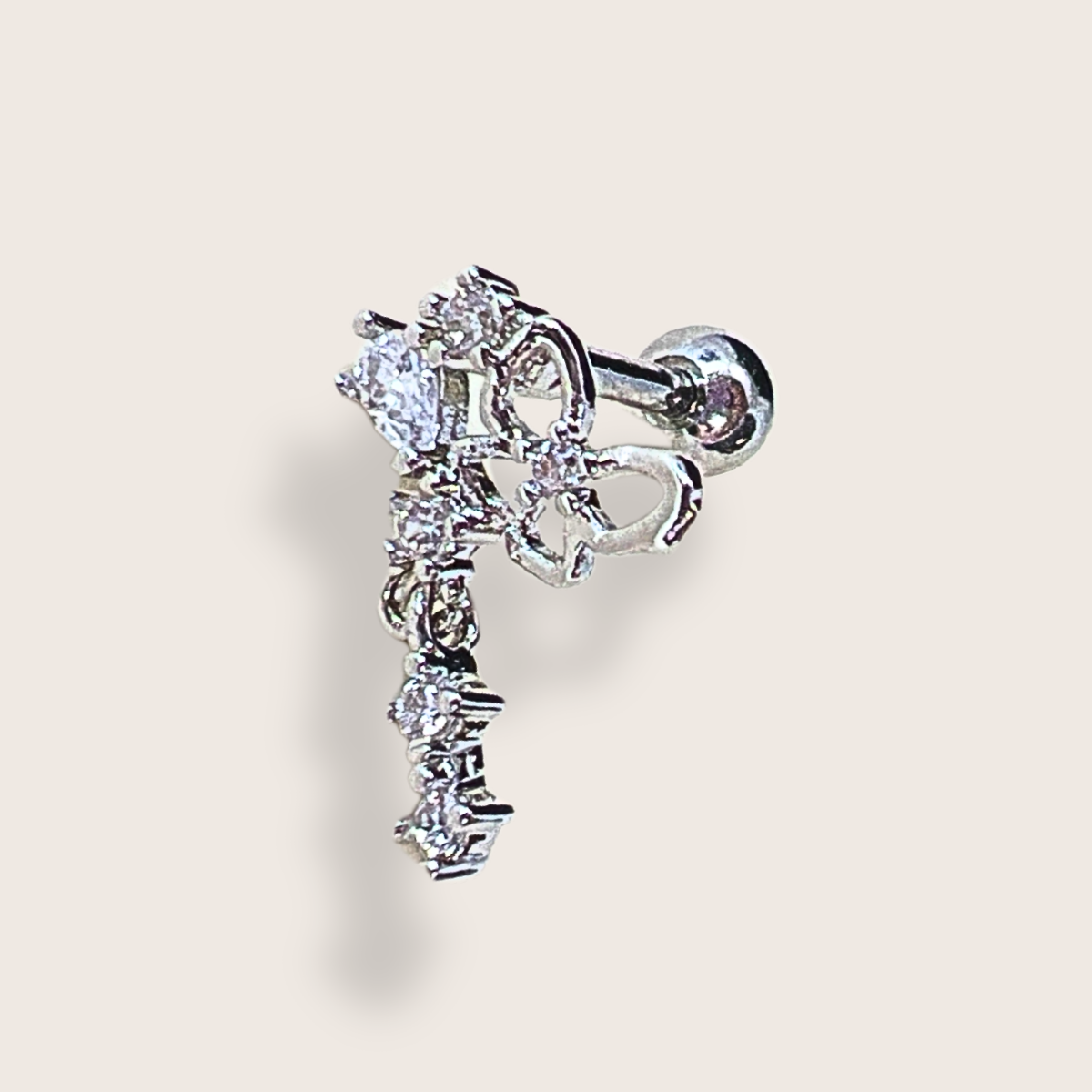 Un piercing raffiné pour l’oreille, orné de trois étoiles en strass qui captent la lumière à chaque mouvement. Idéal pour une touche scintillante et délicate.