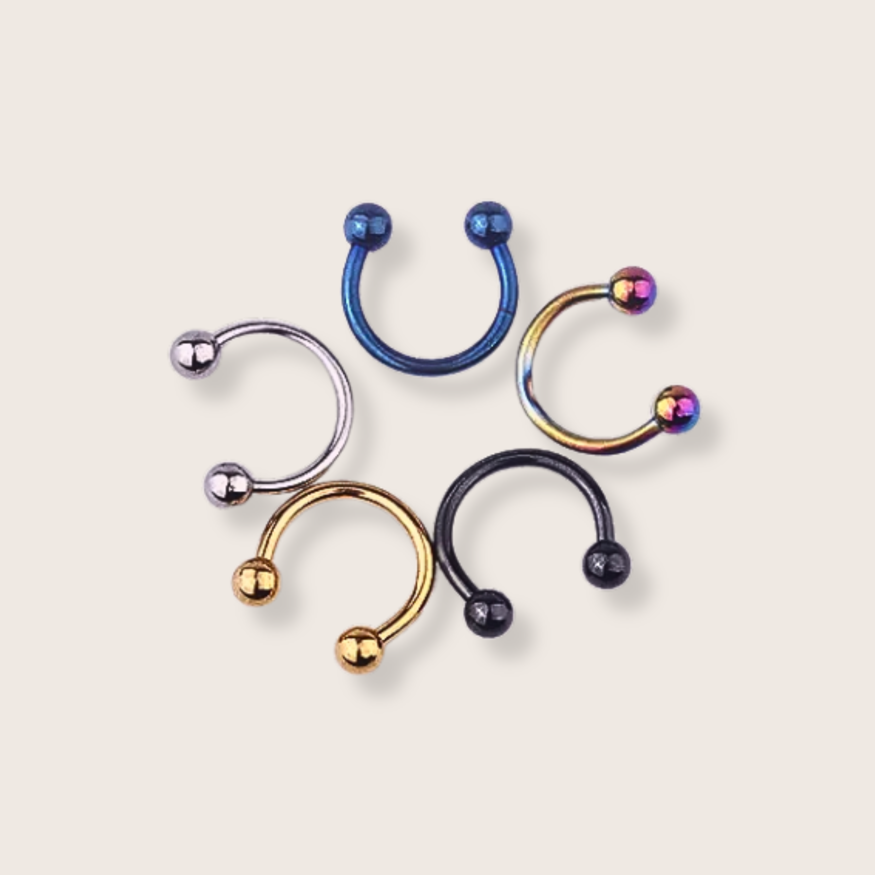 Piercing en fer à cheval en acier inoxydable chirurgical, conçu spécialement pour le corps. Parfait pour le smiley, le septum, le tragus ou encore l’hélix. Un bijou polyvalent, hypoallergénique et durable.